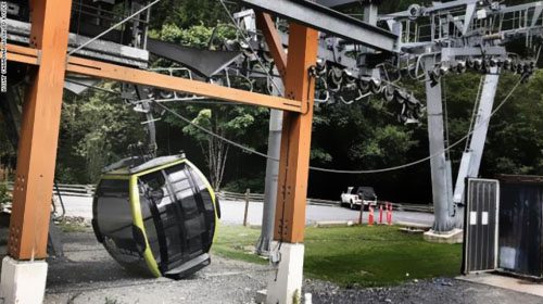 加拿大景區纜車電纜被切斷 30多架纜車從高空墜地