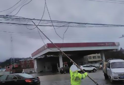 4時10分許,在何家橋路口,一條電纜線被勁風吹落,橫在了路中心,阻止了車輛的正常通行,不及時掃除會形成大面積的擁堵,正在路口執勤的瓷都交警新廠中隊隊員胡建根敏捷用手舉起了電纜,讓車輛在電纜下通行,接著又讓人找來了一根竹竿,把電纜撐住,風雨無情的抽打在臉上、身上。平常看似纖細的電纜由于長期支撐而變得非常沉重,幾名協警輪番全力支撐著,直到晚6時。